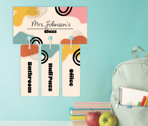 One of my favorite products to develop was the hall pass boards. Due to trend research we decided to go with a boho design and a bold teacher design.