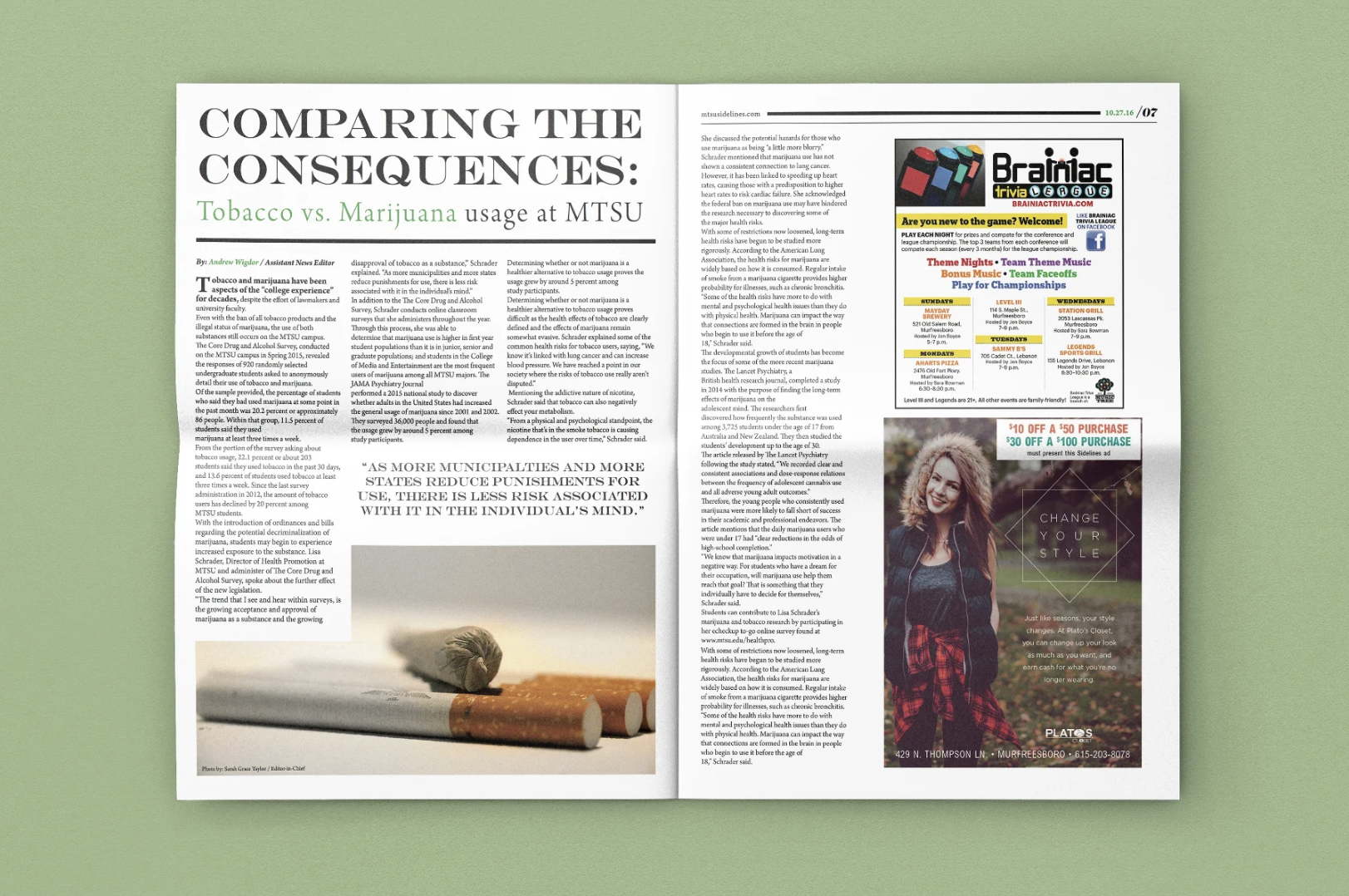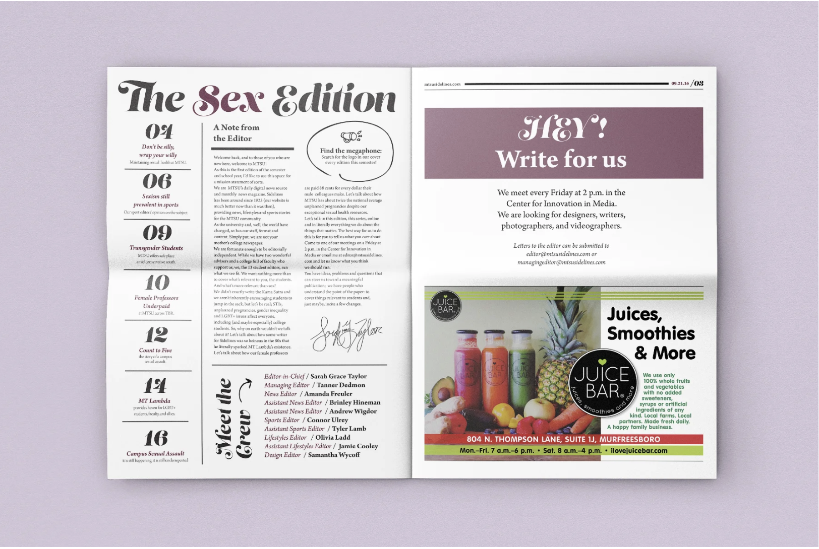 I won an award from the Southeast Journalism Conference during Best of the South 2016 as one of the Best Newspaper Page Layout Designers for this series.